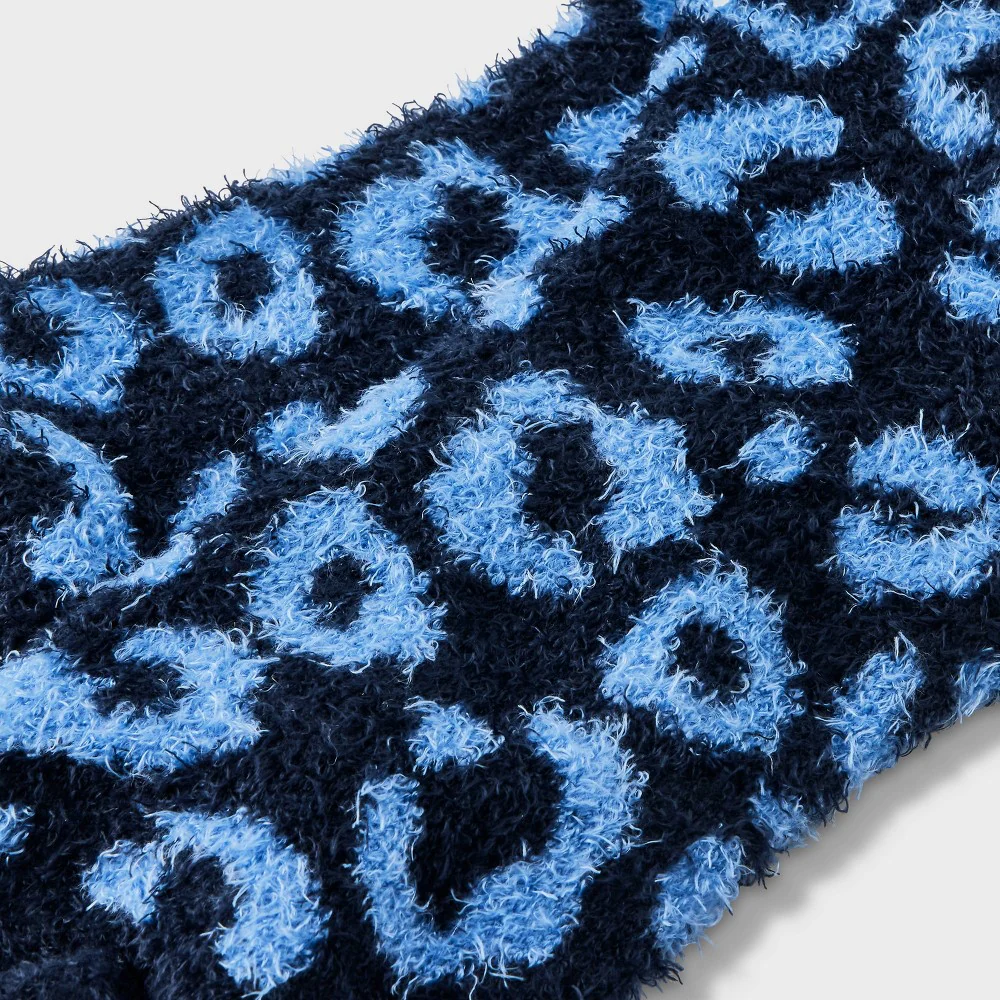 Women's Leopard Cozy Crew Socks - Auden Blue 4-10—